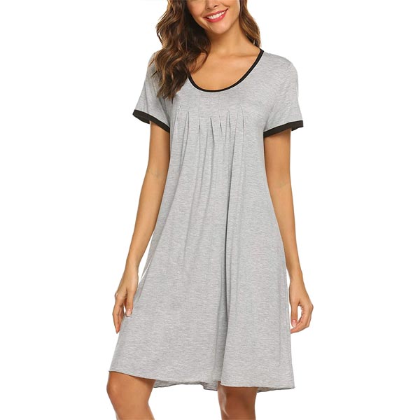 - 【Features】Nightdress featuring front pleats detail, short sleeve sleepshirt, round neck, solid color, contrasting trim decor around the neck and the sleeves