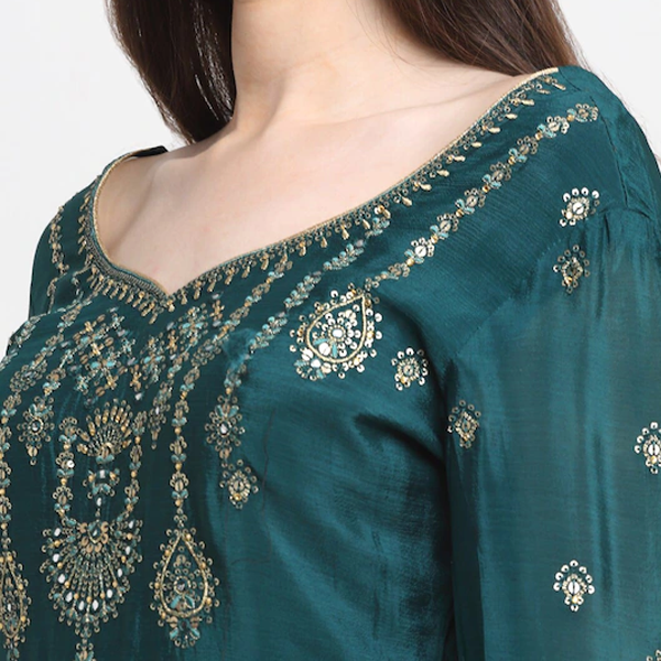 Green and silver-toned embellished kurta fabric