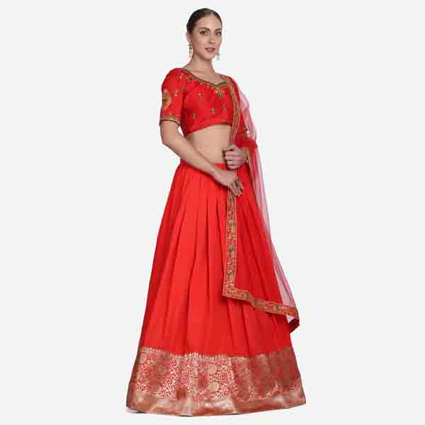 Red Art Silk Flared Lehenga
