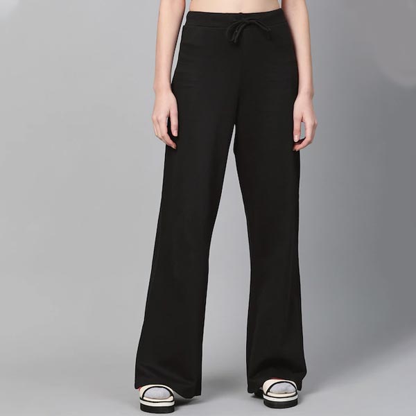 Women Black Regular Fit Solid Wide Leg Track Pants